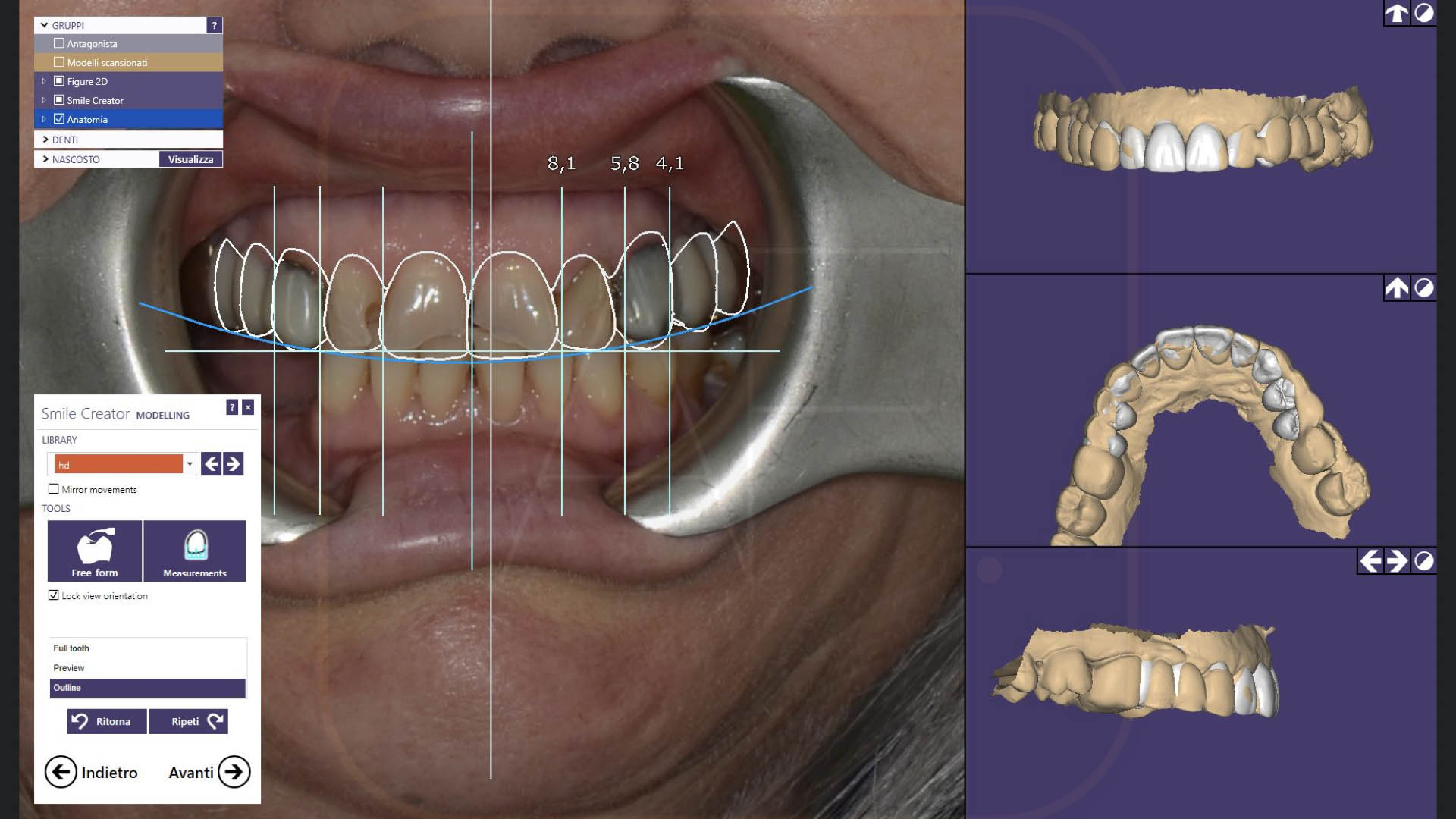 Tutto ciò avviene inoltre con un’ottimizzazione dei tempi operativi. Quindi si uniscono due funzioni in un unico atto: la valutazione del paziente e la raccolta preliminare dei dati. Partendo dai file ottenuti con la scansione è facile e veloce la previsualizzazione digitale di una riabilitazione protesica (figura 1, 2) o la pianificazione chirurgica di una riabilitazione implantare.