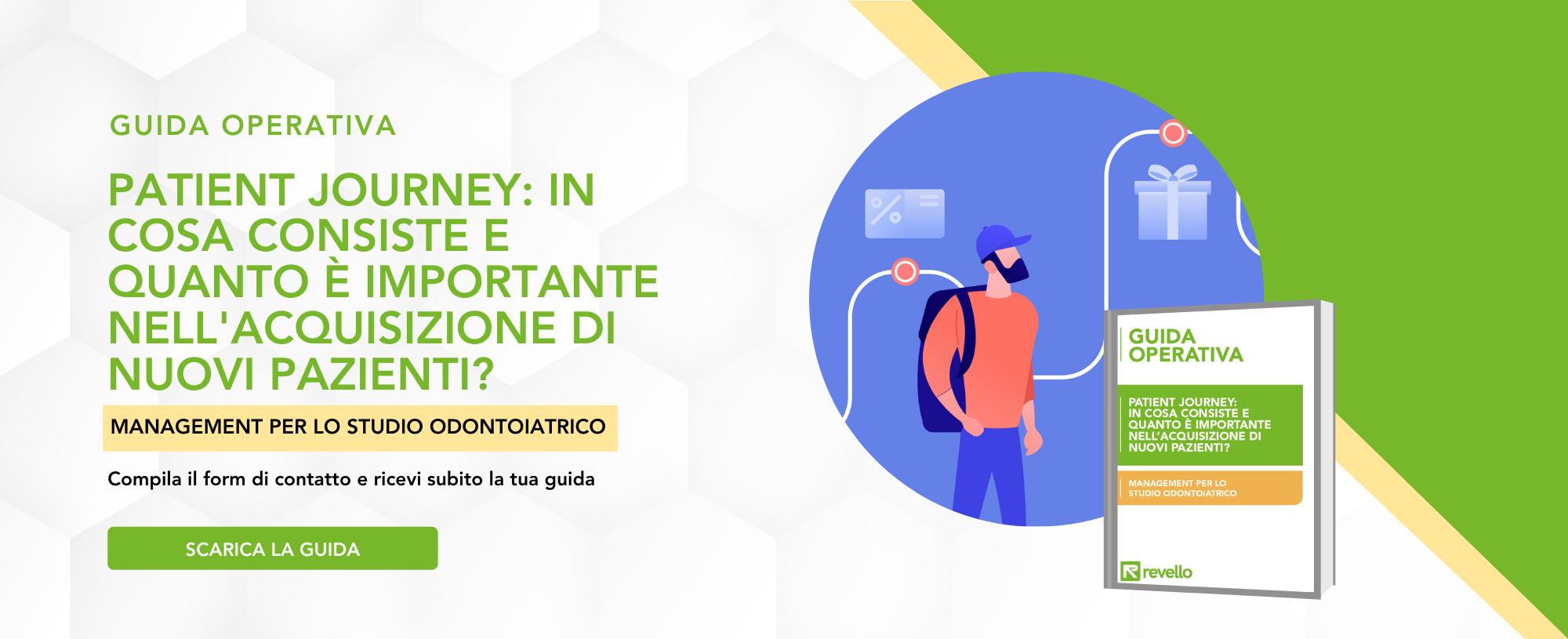 Scarica la guida per approfondire il tema della Patient Journey e per capire come “organizzare il perfetto viaggio” del paziente verso il tuo studio dentistico.