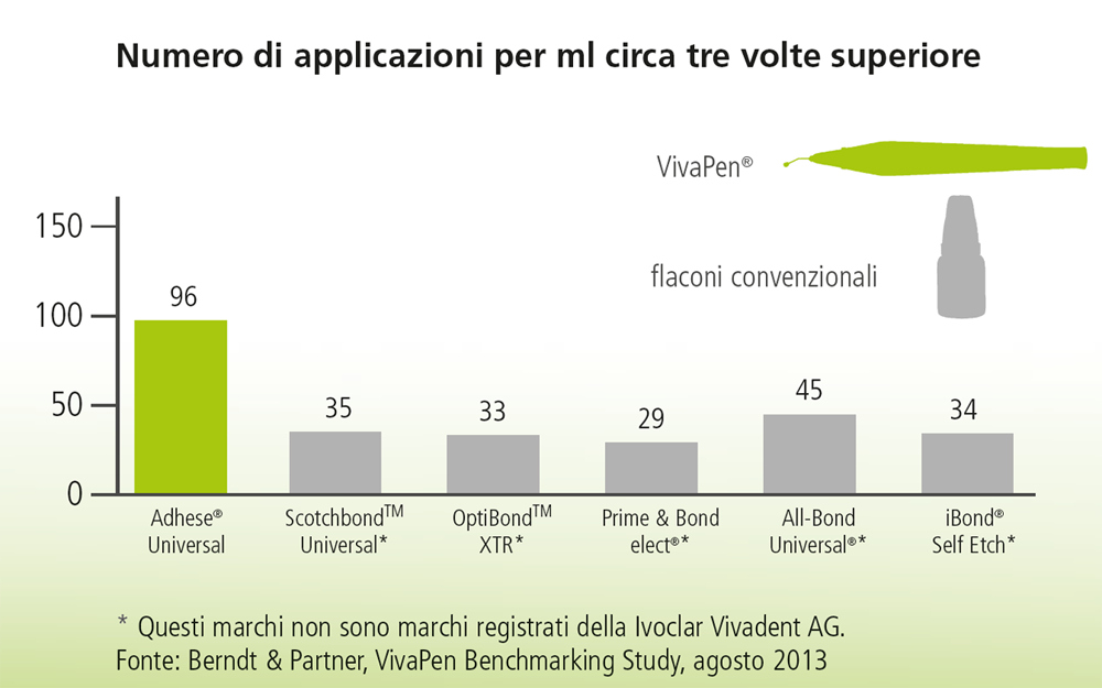 La versione in dispenser Vivapen consente di ottimizzare l'utilizzo del prodotto e di non sprecarlo, rendendo Adhese Universal estremamente conveniente nel rapporto costo/applicazione.