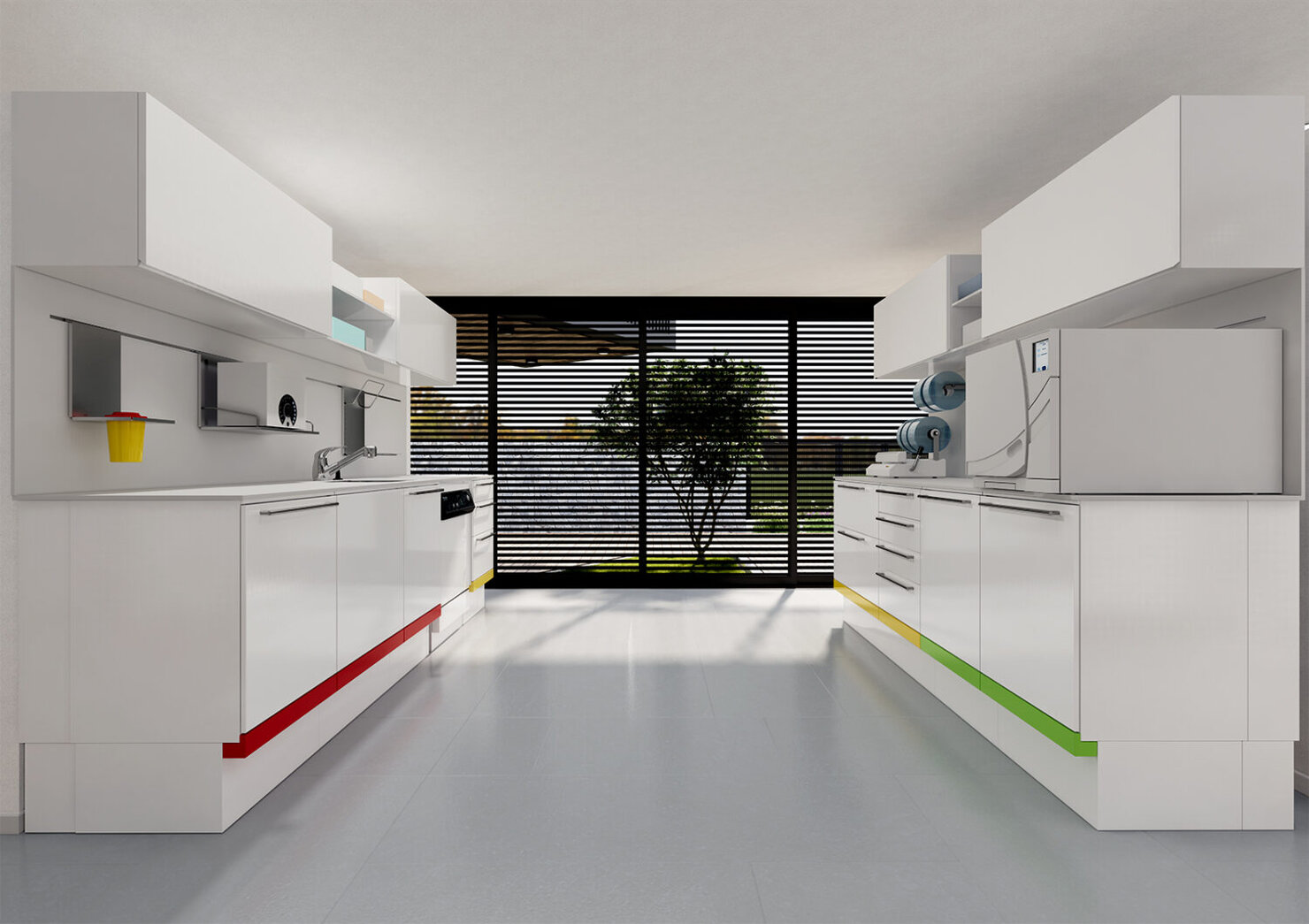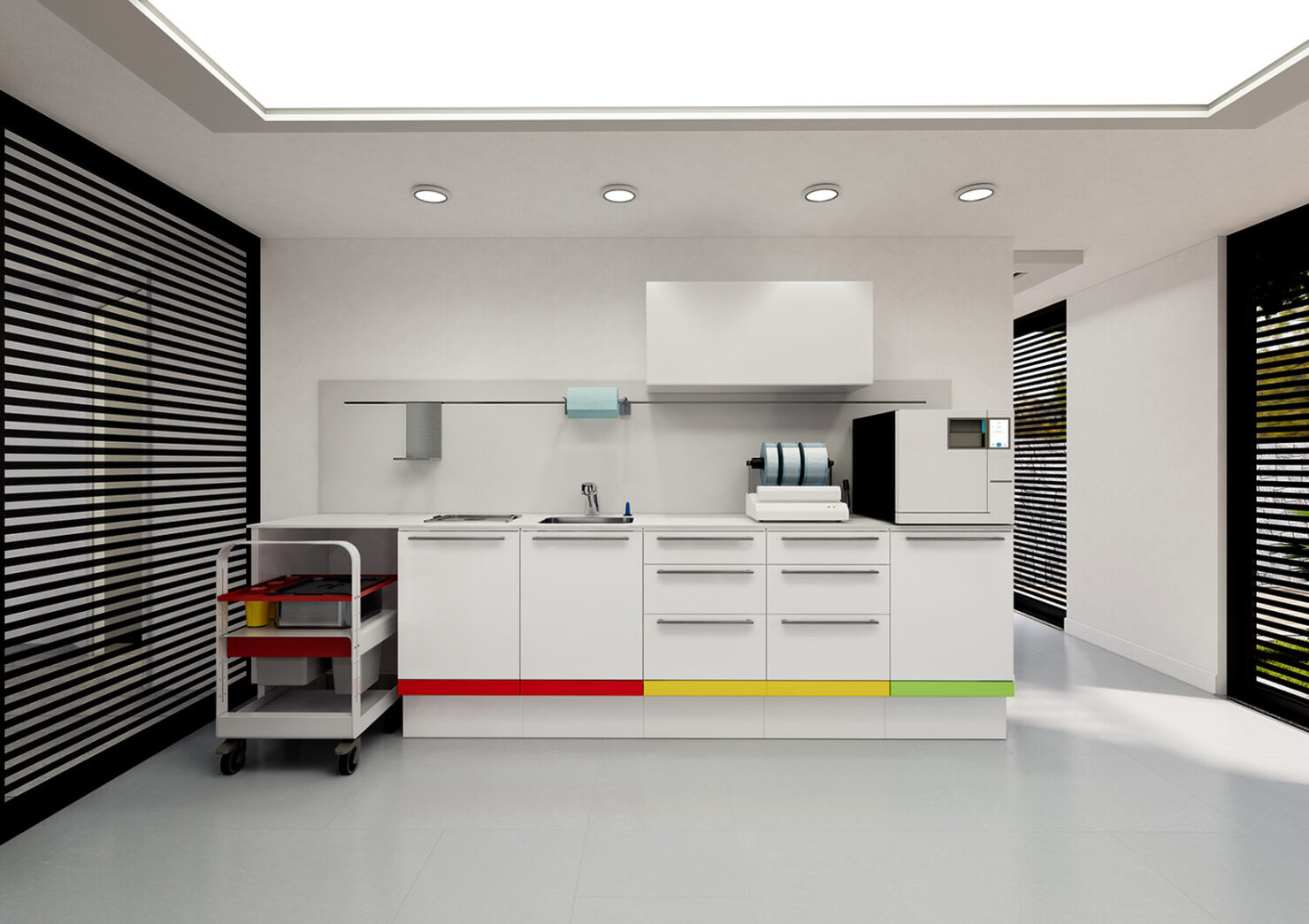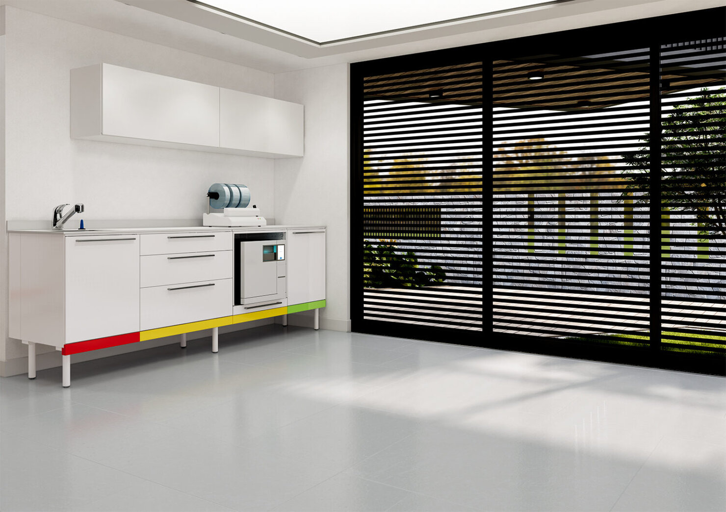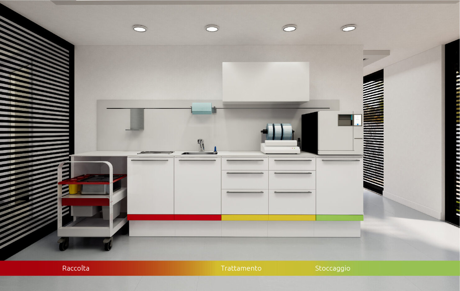 Moduli e vetrine adatti a conservare i materiali sterilizzati.