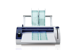 Inoltre, il coperchio in policarbonato consente di seguire visivamente il rotolo fino a sotto la zona di saldatura e il comodo piano di appoggio aiuta a razionalizzare lo spazio, non obbligando più l'operatore a tenere in mano la busta da sigillare.