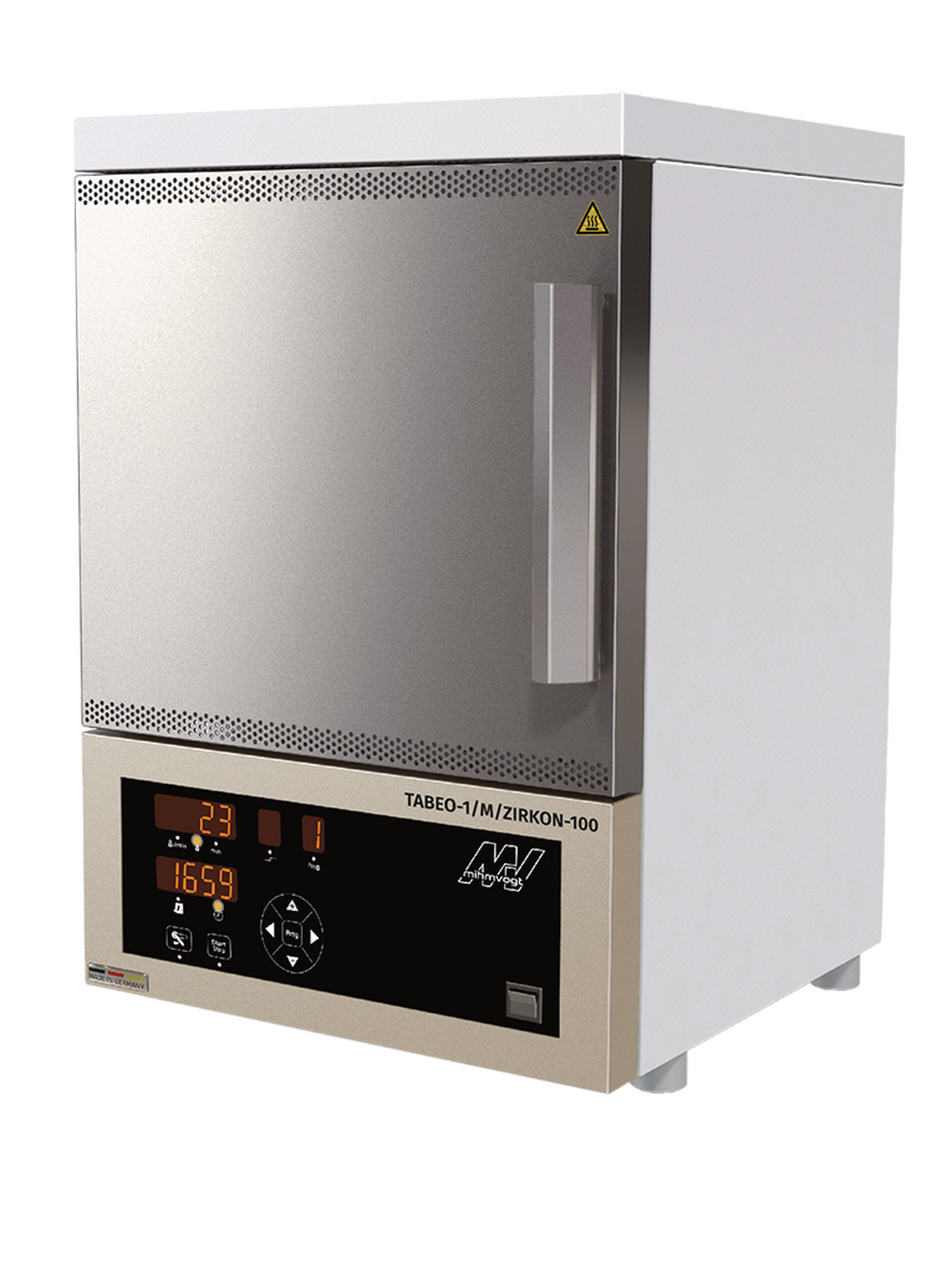 Il TABEO-1/M/ZIRKON-100 è un forno di sinterizzazione progettato per un vassoio di sinterizzazione con un diametro di Ø 100 mm e un'altezza di 30 mm.
