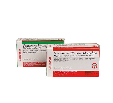 Scandonest Septodont è un anestetico iniettabile a base di mepivacaina cloridrato, progettato per anestesie locali o loco-regionali. Questo prodotto è particolarmente indicato per procedure brevi e trattamenti parodontali, in special modo quando l'uso dell'adrenalina è controindicato.