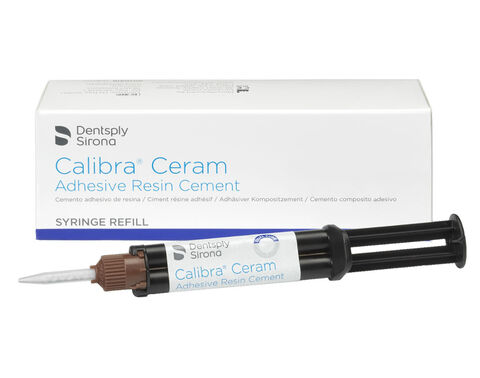 Il cemento in resina adesivo Calibra Ceram è un cemento in resina ad alta resistenza a polimerizzazione leggera visibile, a doppia polimerizzazione o autopolimerizzazione che contiene fluoruro.