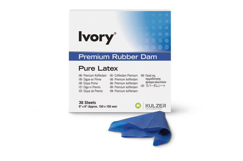 Si tratta di fogli in gomma realizzati in lattice naturale di spessore fine-medio. Le dighe in lattice di gomma profumata Ivory hanno un'alta resistenza, riducendo quindi in rischio di strappo durante l'applicazione. La diga in gomma Ivory è sottile, flessibile e può essere facilmente posizionata anche nelle aree più difficoltose.