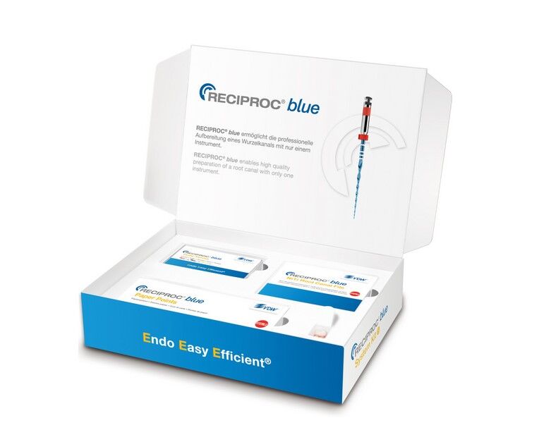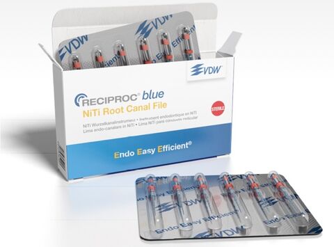 Reciproc Blue VDW è uno strumento reciprocante monouso sterile in NiTi trattato termicamente. Questo file si distingue per la sua affidabilità e semplicità d’impiego nella preparazione canalare, offrendo flessibilità, sicurezza e alta efficienza di taglio. Il prodotto, sviluppato appositamente per le procedure di endodonzia, facilita le fasi operative grazie al concetto “one file endo”. L’innovativo trattamento termico rende lo strumento RECIPROC blue particolarmente flessibile e garantisce una progressione più dolce e sicura all’interno del canale radicolare, oltre a conferire alla lega il suo caratteristico colore blu.